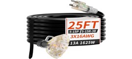 A 25-foot extension cord that connects to a standard 3-pronged electrical outlet.